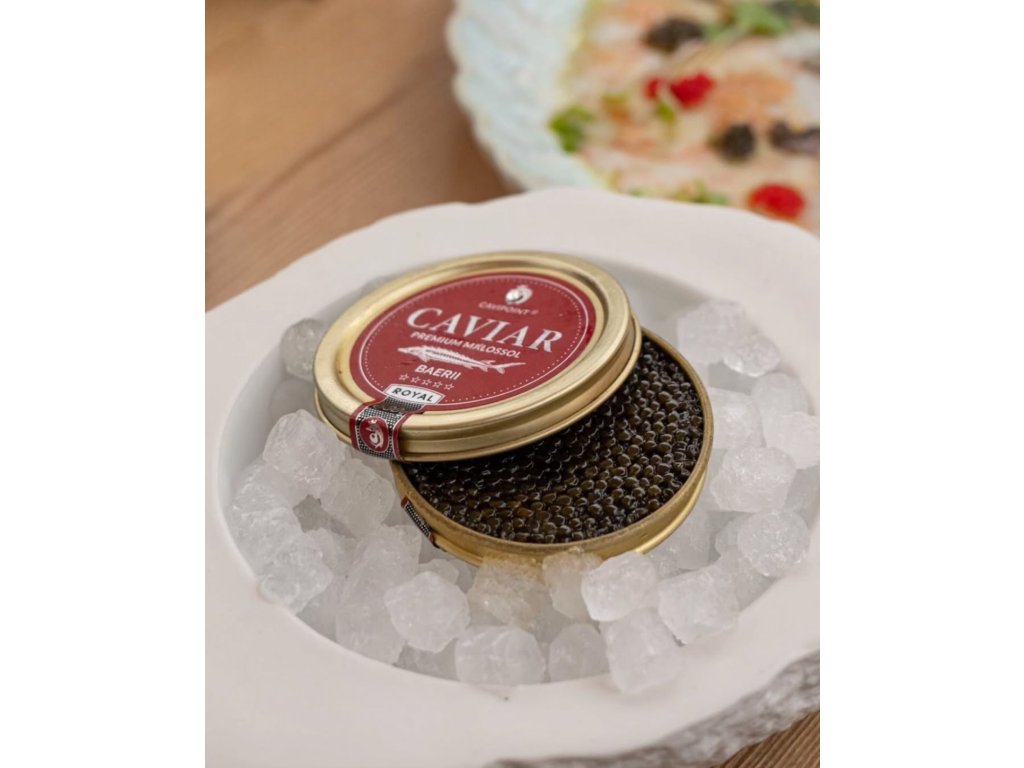 STURGEON CAVIAR (SIBERIAN ROYAL) je kaviár ze sibiřského jesetera (Acipencer BAERII). Vajíčka dosahují velikosti 2,5-2,8 mm, mají lesklé odstíny od střibrně šedé po tmavě šedou až černou barvu. Tento kaviár je vyhledáván pro svou extra jemnou a zarověň výraznou chuť, která potěší Vaše chuťové smysly.